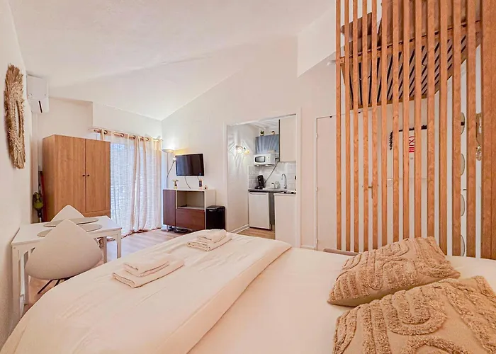 A Proche Mer - 2 Pers, Ac apartman önellátó felszereltséggel, többek között teljesen felszerelt konyhával, valamint étkezővel várja a vendégeket. A Nice Cote d'Azur repülőtér egy 10 perces autóúttal elérhető.